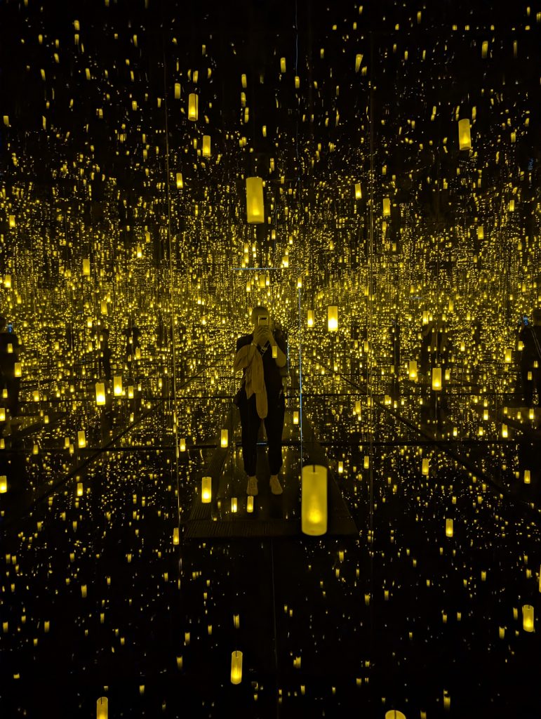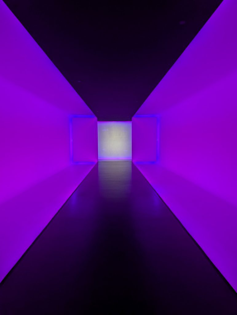 Museum of Fine Arts Houston. Left: James Turrell, “The Light Inside”—installation in underground light tunnels. Right: Yayoi Kusama, “Aftermath of Obliteration of Eternity.” Photographs by Katie Lang and used with her permission.