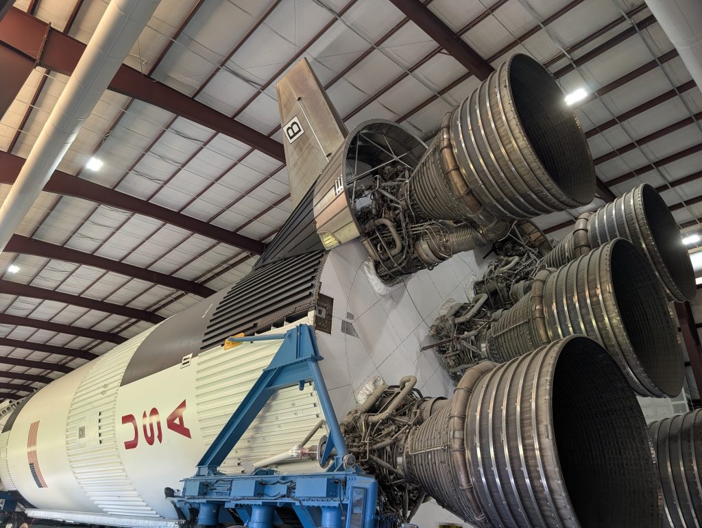 Left: exterior of Space Center Houston. Right: Saturn V rocket. Photos by Katie Lang and used with her permission.